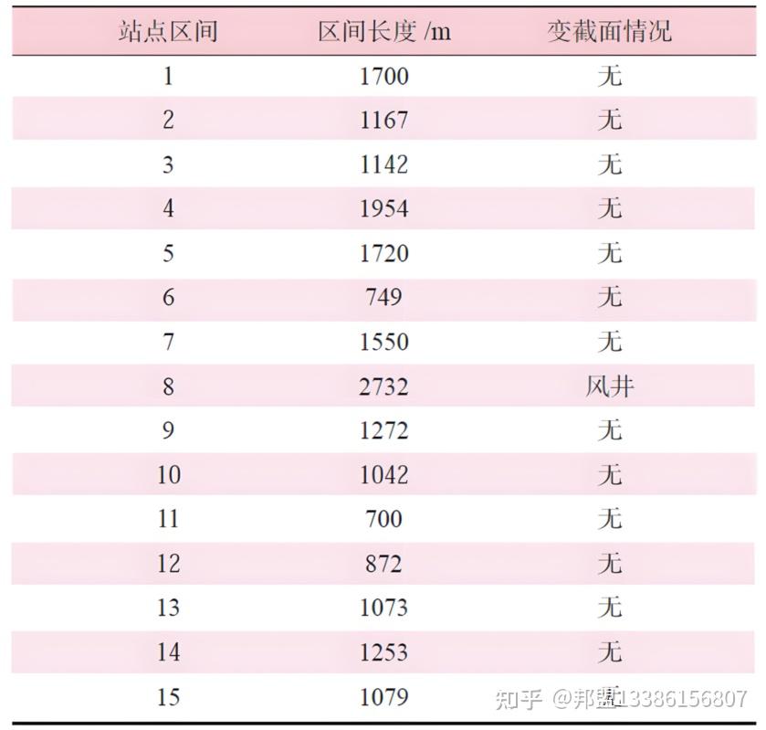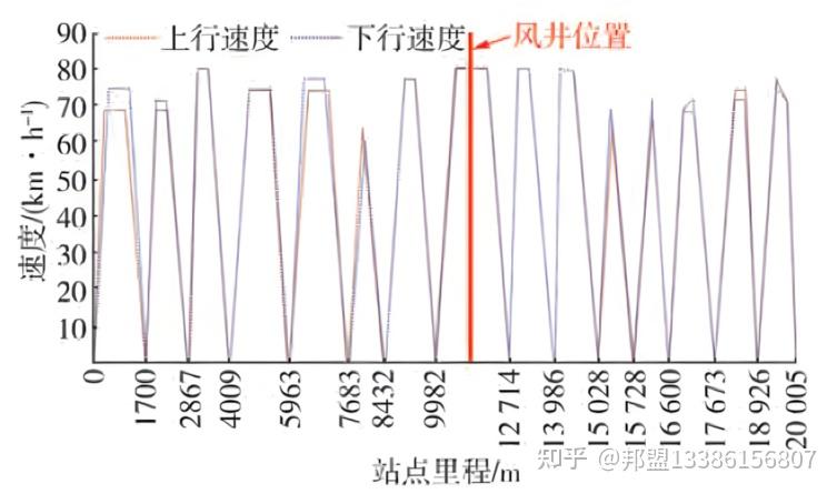 试验区间与列车运营区间保持一致,为全隧道区间,虽然列车在全隧道内运行时不存在进出洞口工况,但隧道内存在一处风井位置。隧道直径为5.4m,风井开口尺寸为4 m×3 m。试验区间包括上下行全线,共15个站点区间,各站点区间情况如表1所示,其中上行线路为区间1—区间15,下行线路为区间15—区间1。列车运行速度如图1所示。